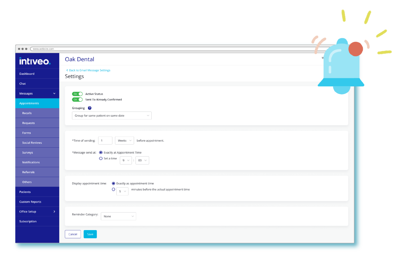 Intiveo lets you customize communication by appointment type. Whether it’s routine cleaning, implant surgery or a pediatric visit, patients receive information that’s specific, relevant, and easy to follow before and after their appointment.